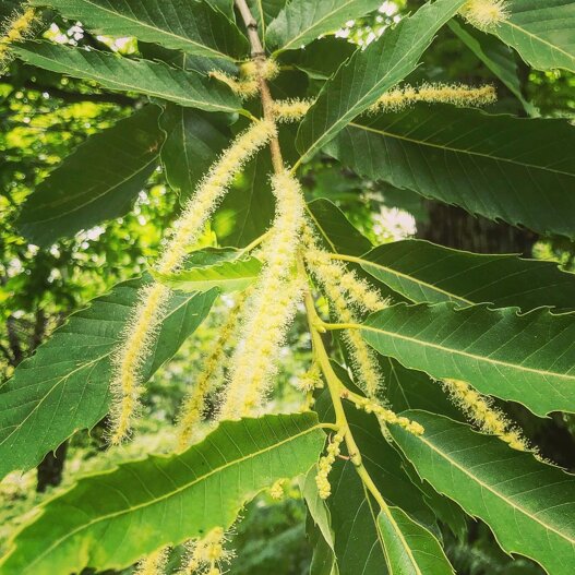 Se a Giugno vi capita di fare una passeggiata in montagna osservate i castagni, cercate con lo sguardo i fiori, potreste sentire anche il ronzio delle api, anche loro sono attratte dal profumo delicatissimo del polline e aiutano i castagni in amore.